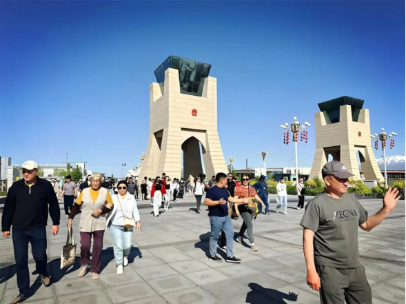 (中哈霍尔果斯国际边境合作中心游客络绎不绝)