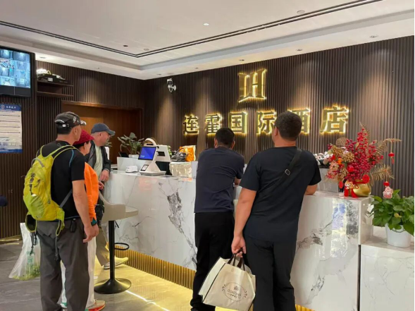 (霍尔果斯连霍国际酒店工作人员为游客办理入住手续)