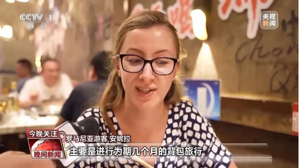 罗马尼亚游客安妮拉:我来自罗马尼亚,我们这次来这里,主要是进行为期几个月的背包旅行,已经在中国待了一周半,重庆大约一天半。我们特别喜欢这里的美食、交通和人民,一切都非常令人满意。