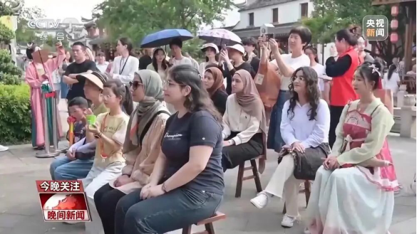 除了购物游,古镇游也正在被不少外籍旅客纳入行程。他们穿梭在古镇中,或是装扮成婺剧中的花旦,体验戏曲的魅力,或是跟着老师敲打、上墨,感受中国的非遗之美。