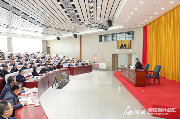 4月17日,自治区党委书记马兴瑞为全区县市区党政正职首期培训班学员授课。石榴云/新疆日报记者崔志坚摄