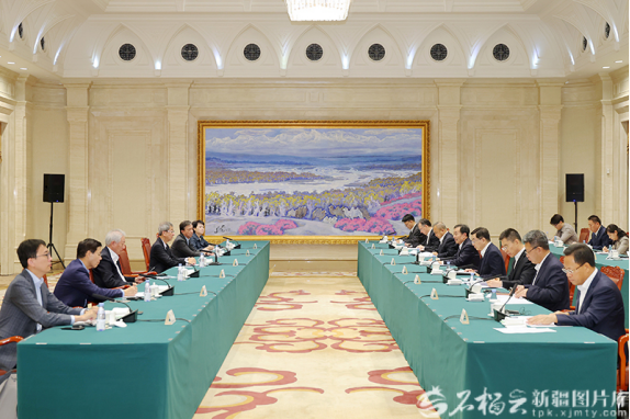 9月11日,自治区党委书记陈小江、自治区主席艾尔肯·吐尼亚孜在乌鲁木齐会见来新疆考察的新加坡淡马锡公司董事长林文兴和候任董事长张志贤一行。石榴云/新疆日报记者崔志坚摄