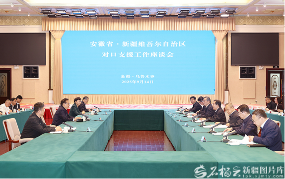 9月14日,安徽省·新疆维吾尔自治区对口支援工作座谈会在乌鲁木齐召开。石榴云/新疆日报记者崔志坚摄