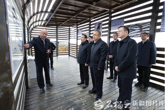 10月14日,自治区党委书记、兵团党委第一书记、第一政委陈小江,自治区党委副书记、自治区主席艾尔肯·吐尼亚孜实地察看艾比湖流域生态环境保护工作。石榴云/新疆日报记者谢龙摄