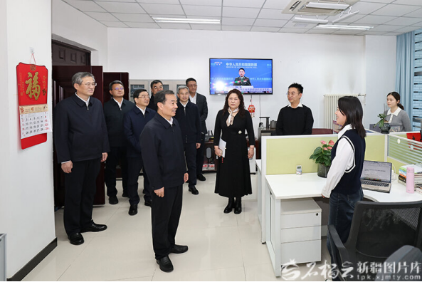 11月7日,自治区党委书记、兵团党委第一书记、第一政委陈小江在人民日报社新疆分社,了解人民网“领导留言板”运行情况。石榴云/新疆日报记者崔志坚摄