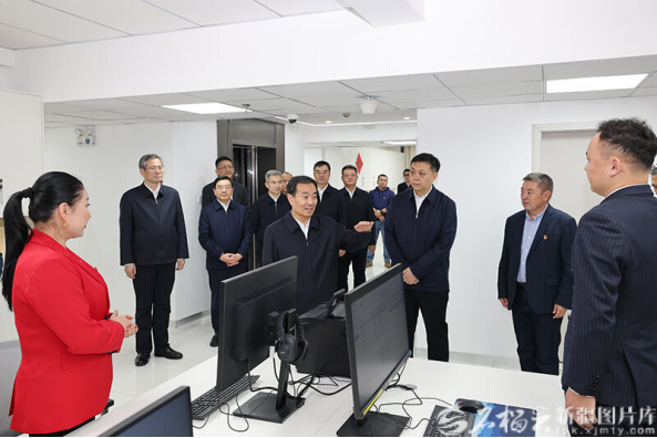 11月7日,自治区党委书记、兵团党委第一书记、第一政委陈小江在新疆日报社,察看新疆国际传播中心运营成效。石榴云/新疆日报记者崔志坚摄