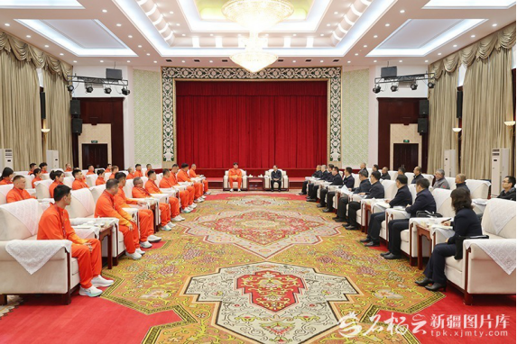 12月4日,自治区党委书记陈小江、自治区主席艾尔肯·吐尼亚孜同载誉归来的第十五届全国运动会新疆体育代表团获奖运动员、教练员代表亲切交谈,代表自治区党委和政府向他们表示热烈祝贺。石榴云/新疆日报记者崔志坚摄