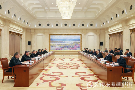 1月14日,自治区党委书记陈小江、自治区主席艾尔肯·吐尼亚孜在乌鲁木齐会见土库曼斯坦副总理阿塔哈雷耶夫。石榴云/新疆日报记者崔志坚摄