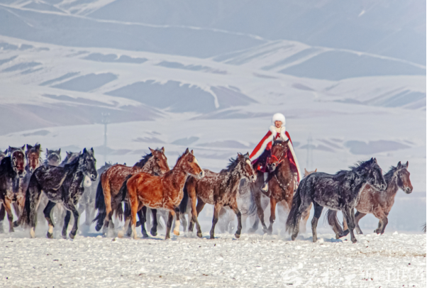 2020年12月31日,贺娇龙在昭苏县天马旅游文化园策马雪原,为家乡宣传。李文武摄