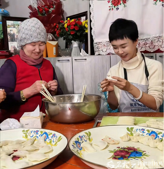 贺娇龙在昭苏县牧民家中和乡亲们包饺子、话家常。资料图片