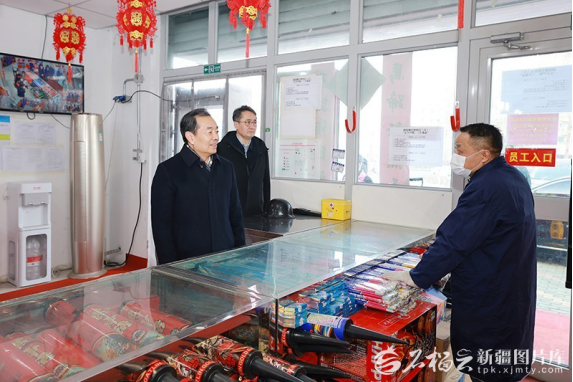 2月20日,自治区党委书记陈小江在乌鲁木齐高新区(新市区)一处烟花爆竹直营店,向经营人员致以新春祝福,详细了解烟花爆竹产品来源、销售和安全防范措施落实等情况。石榴云/新疆日报记者崔志坚摄