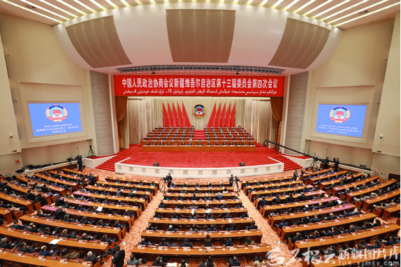 1月30日,中国人民政治协商会议新疆维吾尔自治区第十三届委员会第四次会议在新疆人民会堂闭幕。石榴云/新疆日报记者崔志坚摄