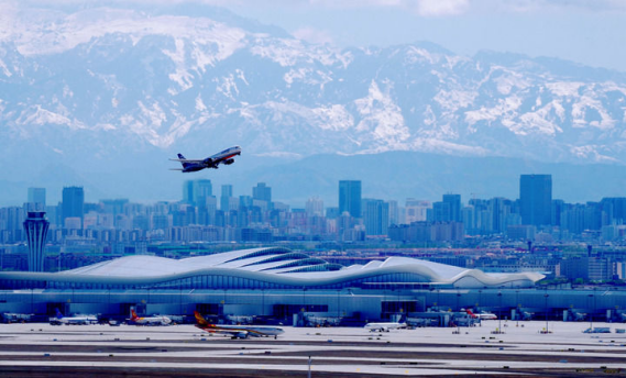 飞机从乌鲁木齐天山国际机场起飞(2025年4月17日摄)。新华社发(王志清摄)