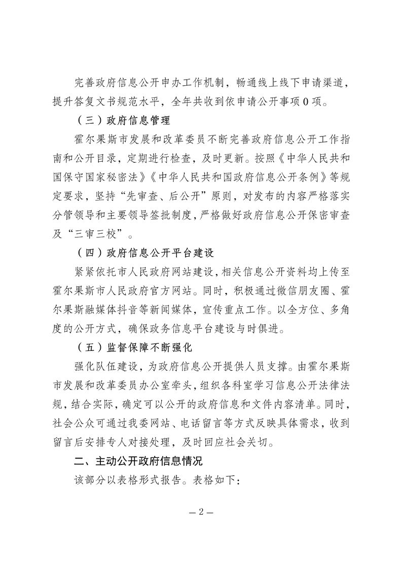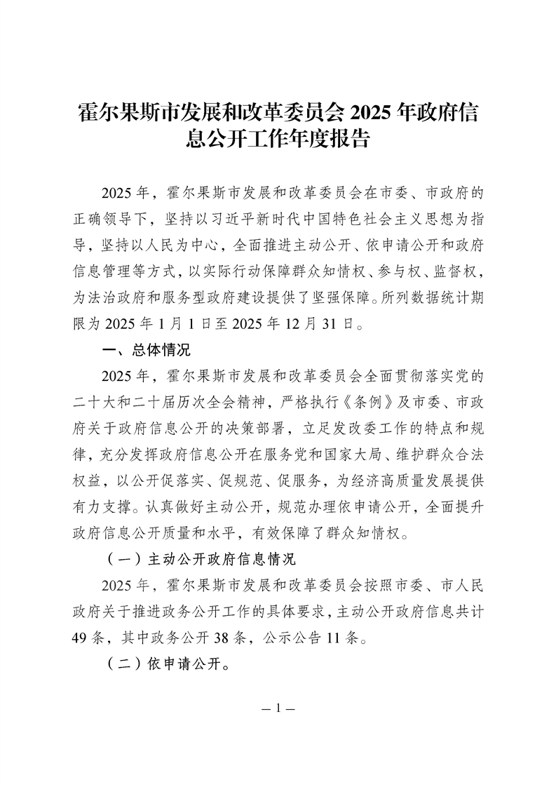 霍尔果斯市发展和改革委员会2025年政府信息公开工作年度报告