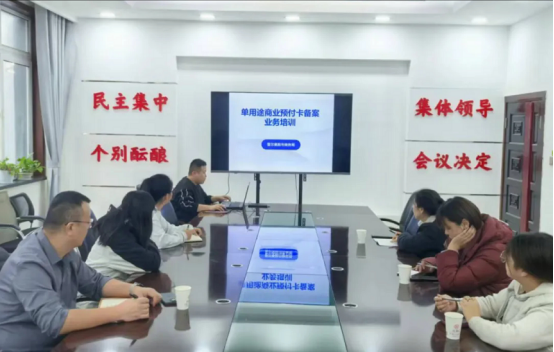 为进一步规范单用途商业预付卡市场秩序,维护消费者合法权益,防范资金风险,霍尔果斯市商务局组织辖区内零售、住宿、餐饮及居民服务业企业开展单用途商业预付卡备案业务培训,帮助企业深入理解并有效执行《单用途商业预付卡管理办法》,促进预付卡市场健康发展。