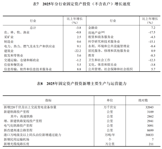 [20]由于投资统计制度方法改革、统计执法检查等因素,2025年固定资产投资相关指标增速按可比口径计算。