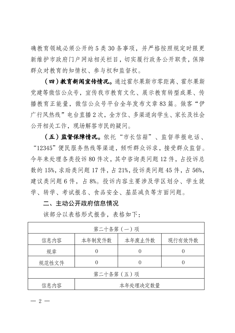 霍尔果斯市教育局2025年政府信息公开工作报告