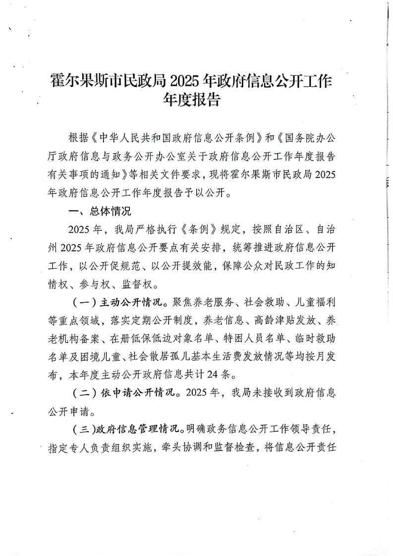 霍尔果斯市民政局2025年度政府信息公开年度报告