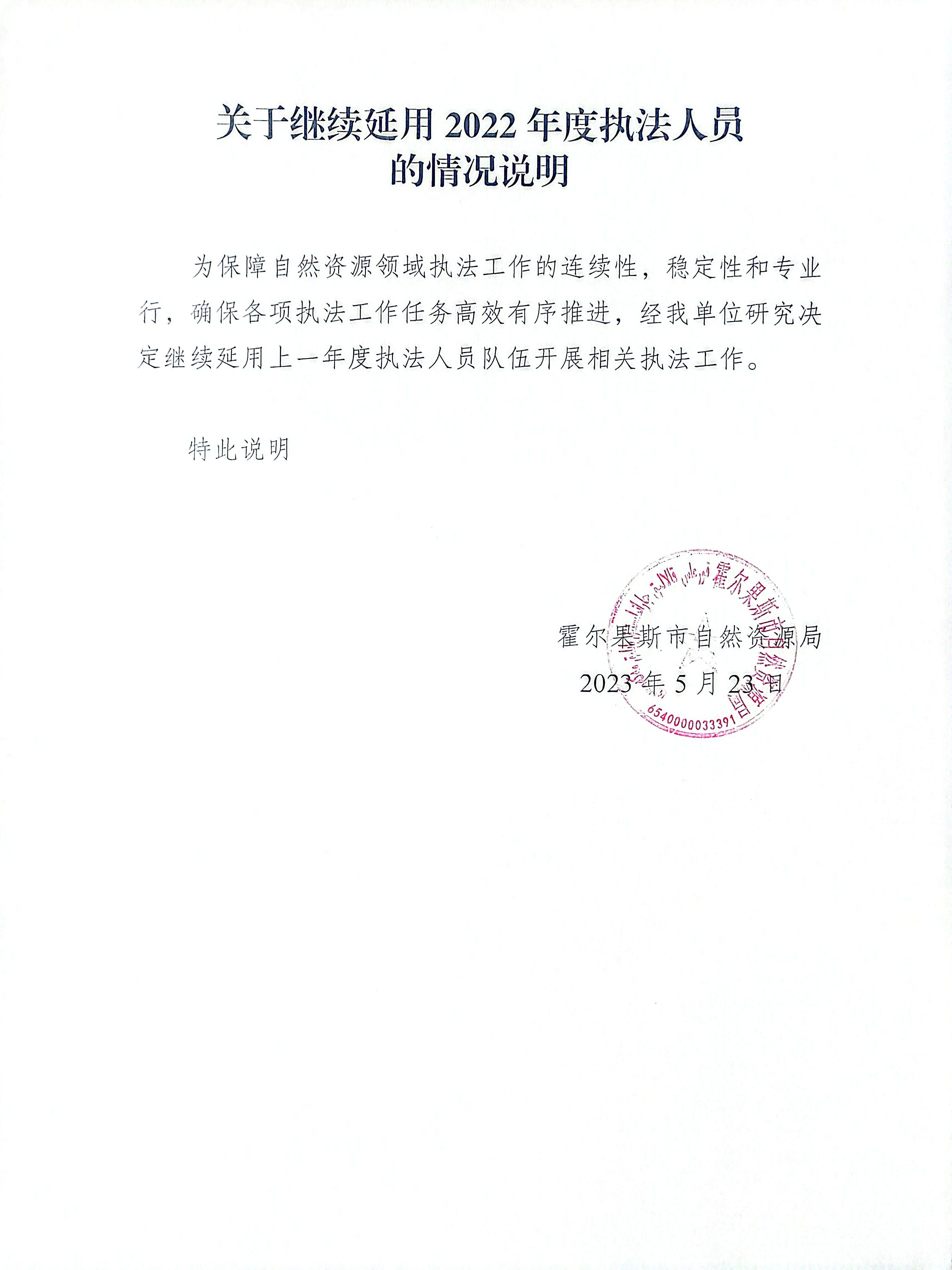 关于继续延用2022年执法人员的情况说明