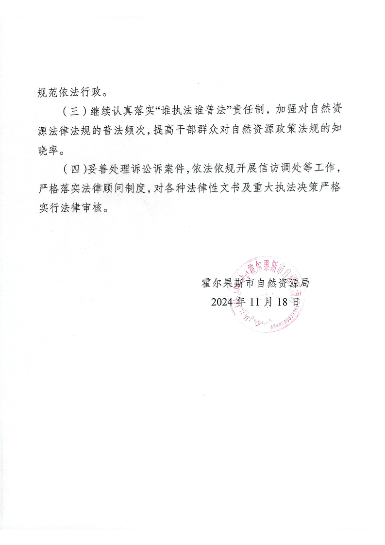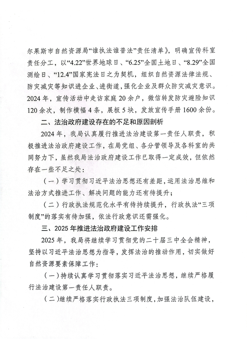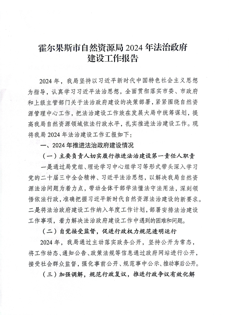 霍尔果斯市自然资源局2024年法治政府建设工作报告