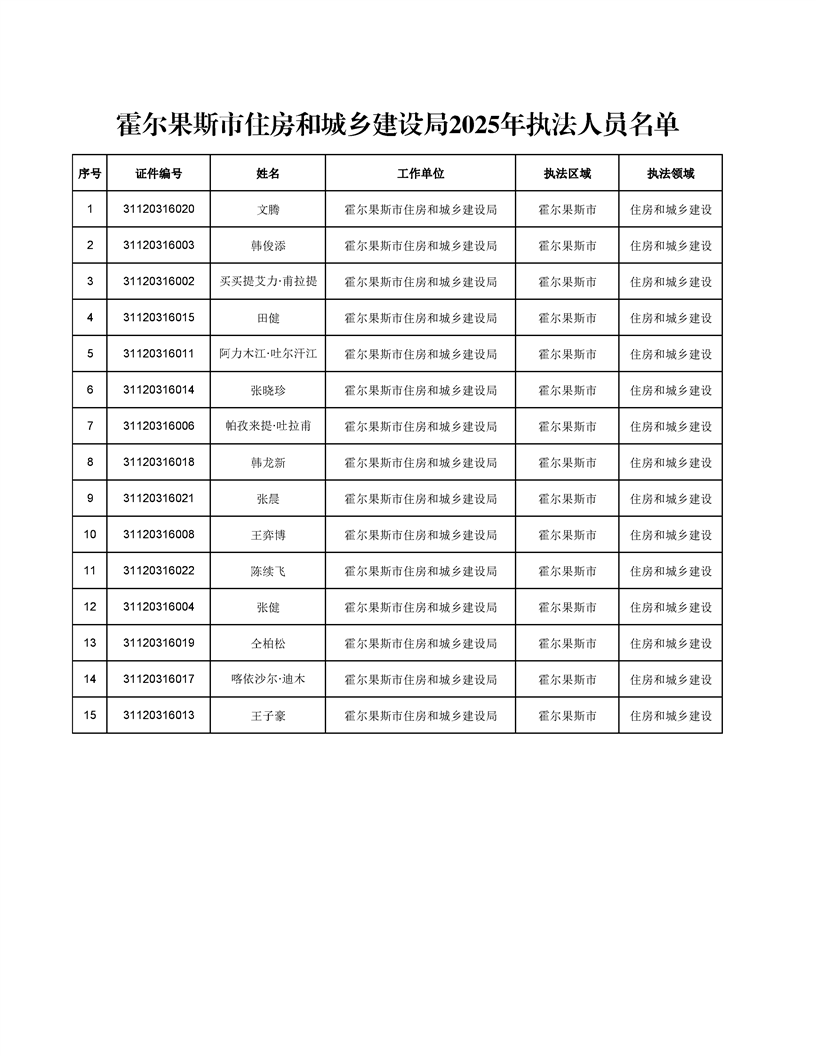 霍尔果斯市住房和城乡建设局2025年执法人员名单