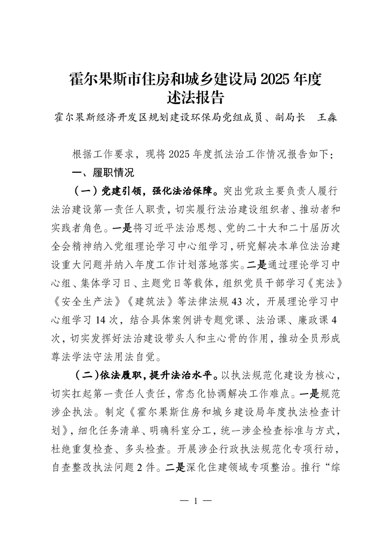 霍尔果斯市住房和城乡建设局2025年度述法报告