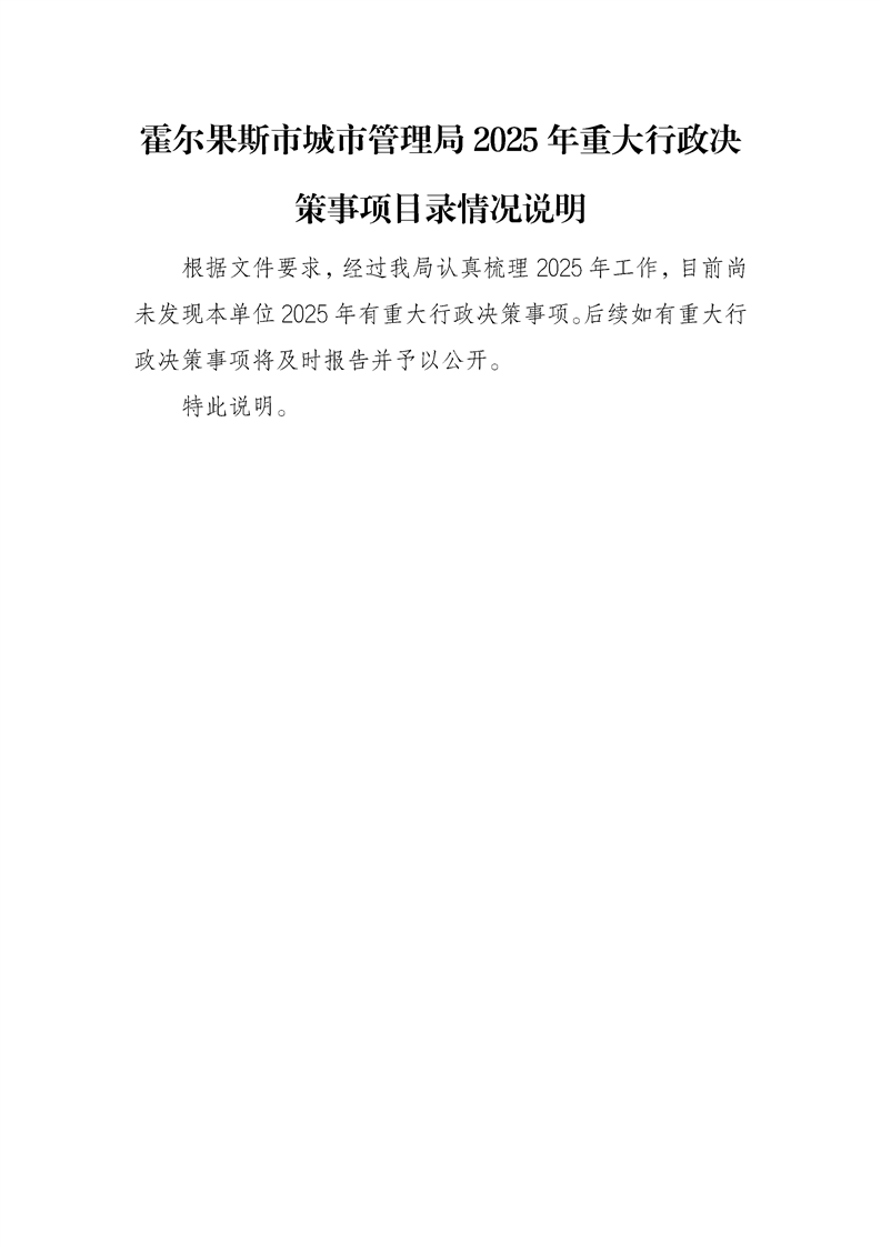 霍尔果斯市城市管理局2025年重大行政决策事项目录情况说明