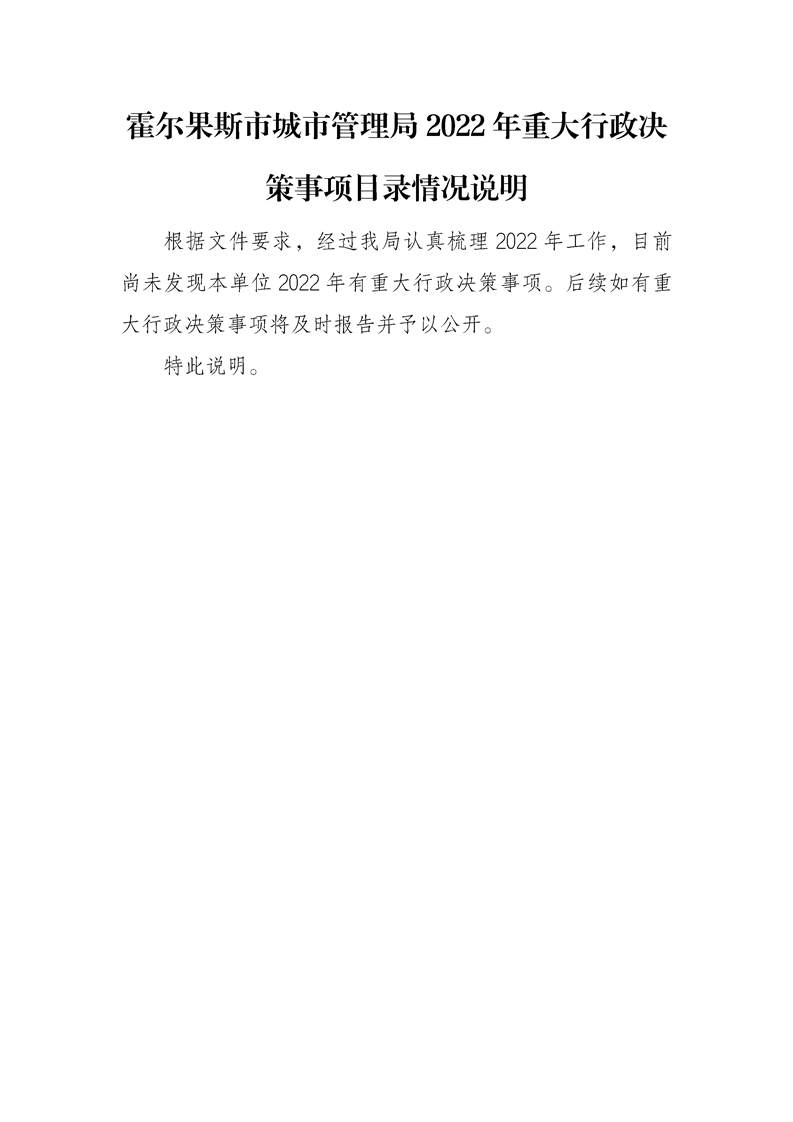 霍尔果斯市城市管理局2022年重大行政决策事项目录情况说明