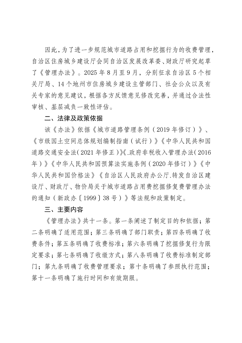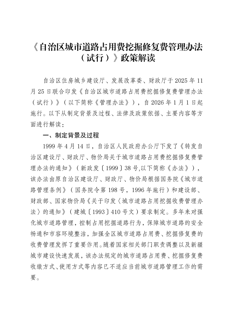 《自治区城市道路占用费挖掘修复费管理办法(试行)》政策解读