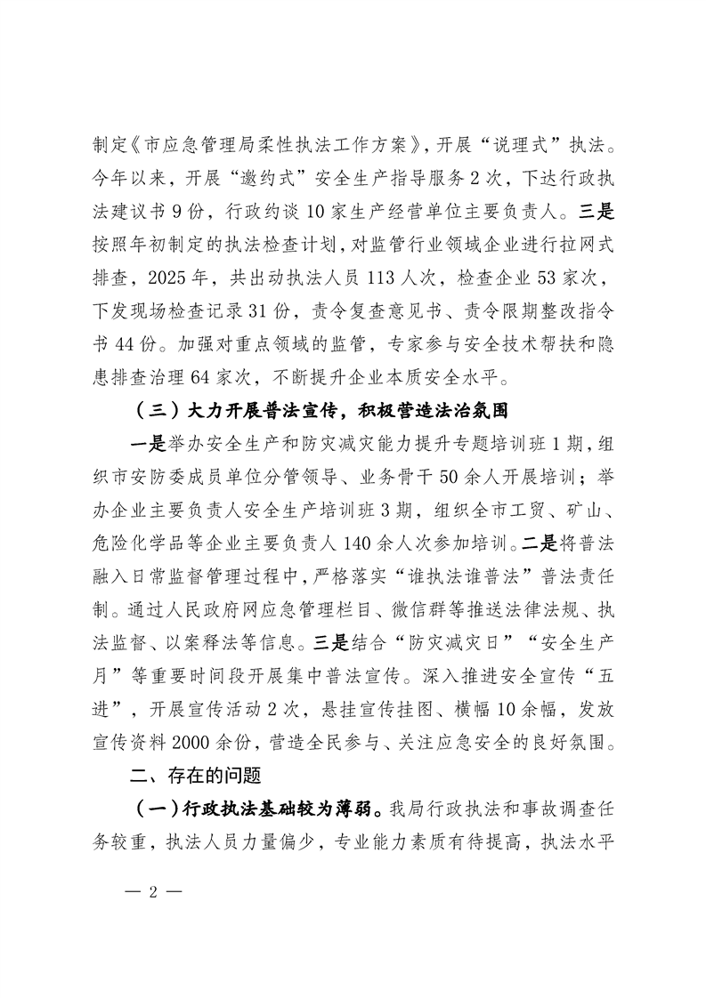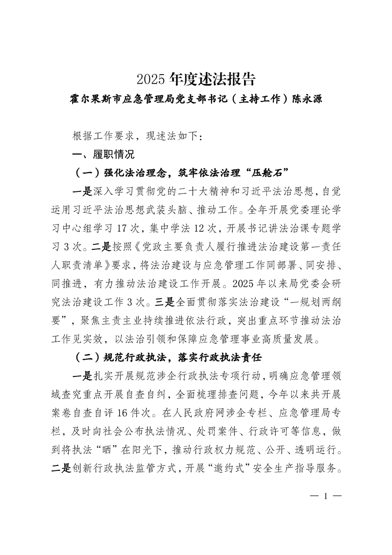 霍尔果斯市应急管理局2025年度述法报告
