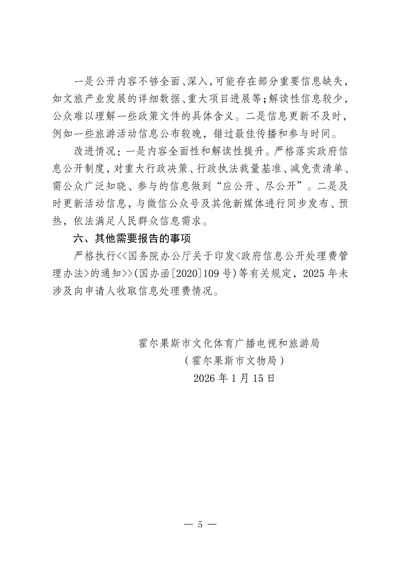 霍尔果斯市文化体育广播电视和旅游局2025年政府信息公开工作年度报告