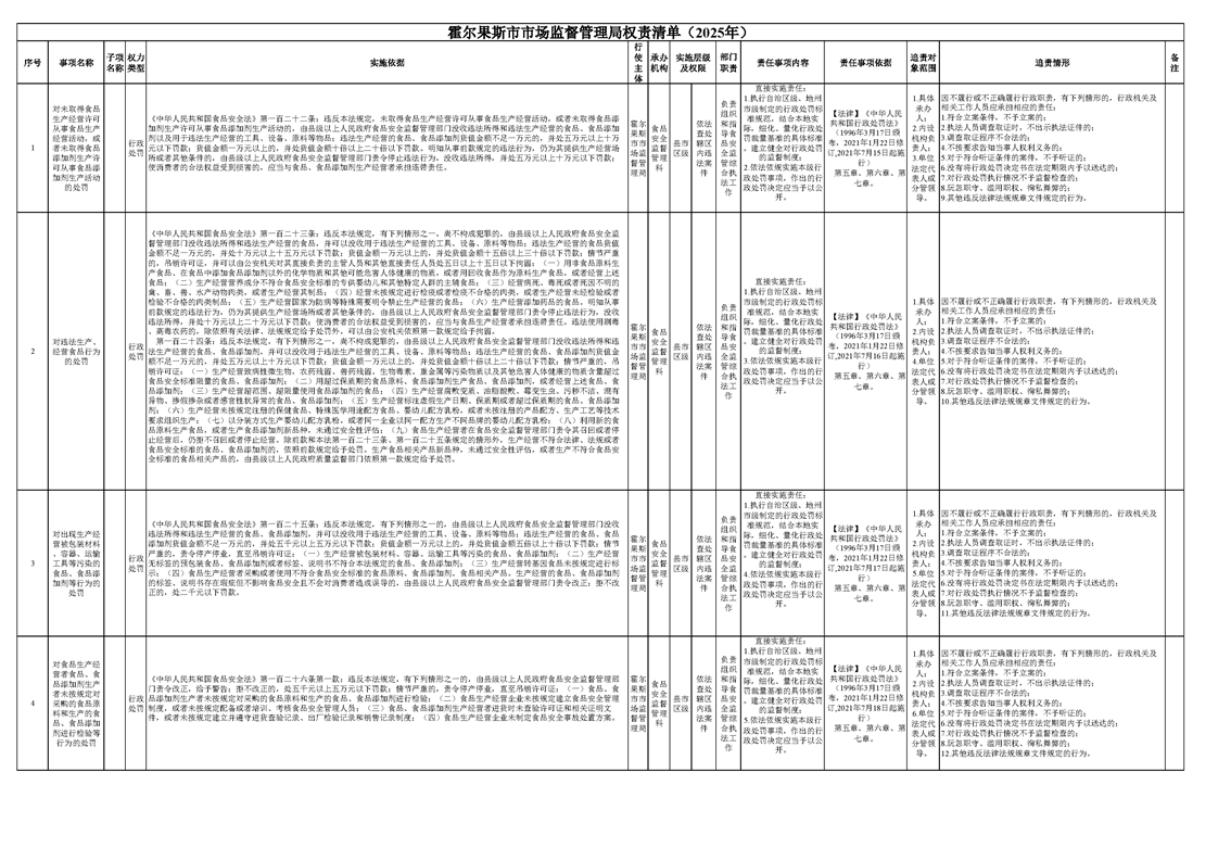 霍尔果斯市市场监督管理局权责清单(2025年)