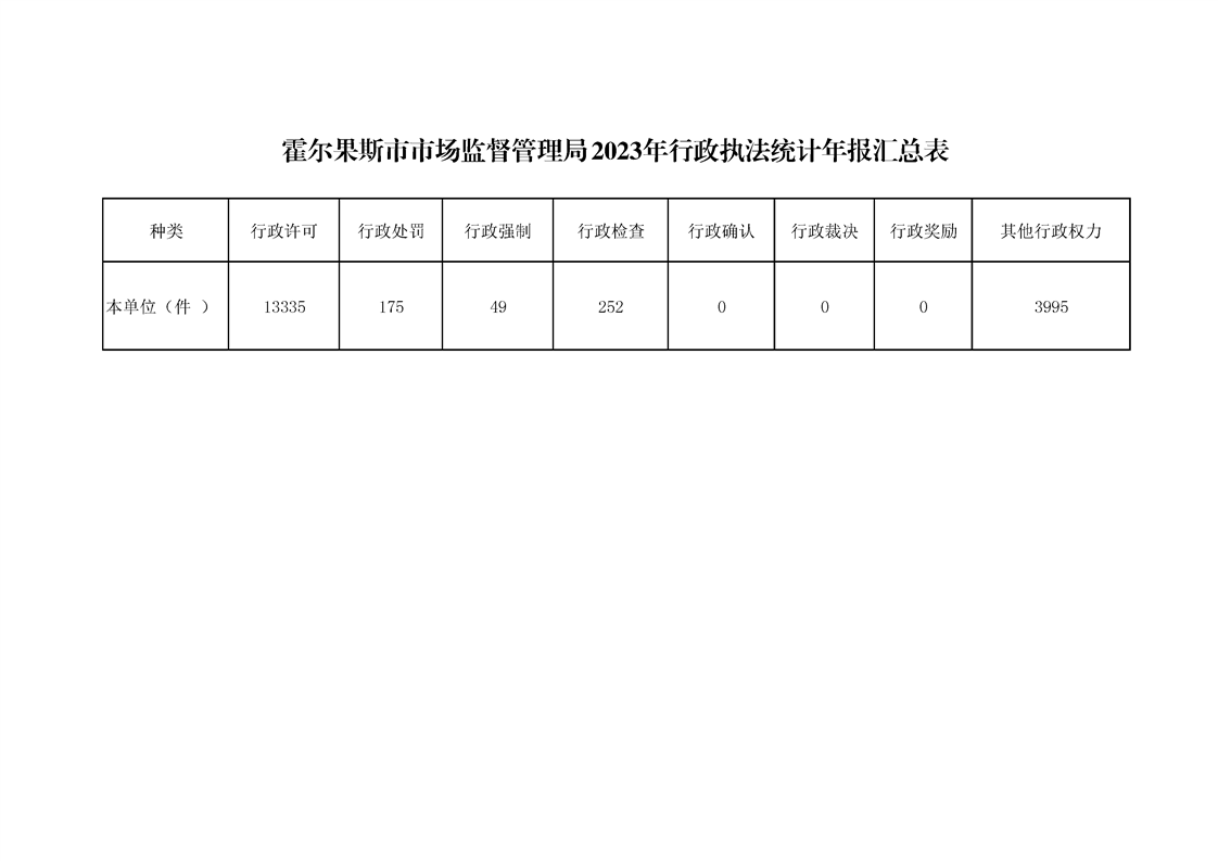 霍尔果斯市市场监督管理局2023年行政执法统计年报汇总表
