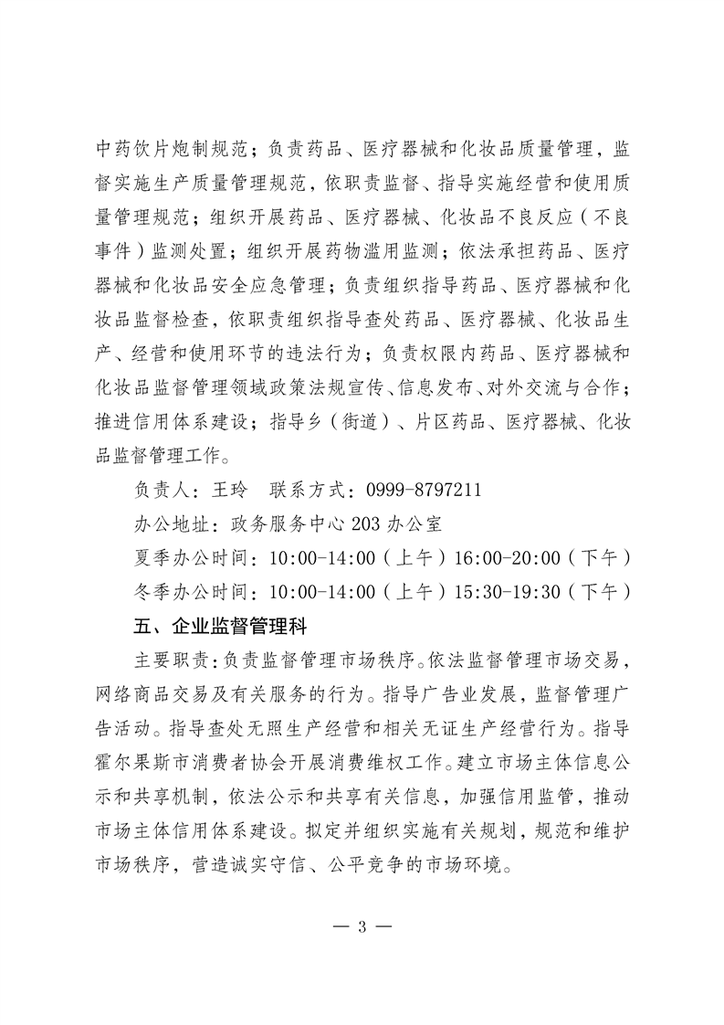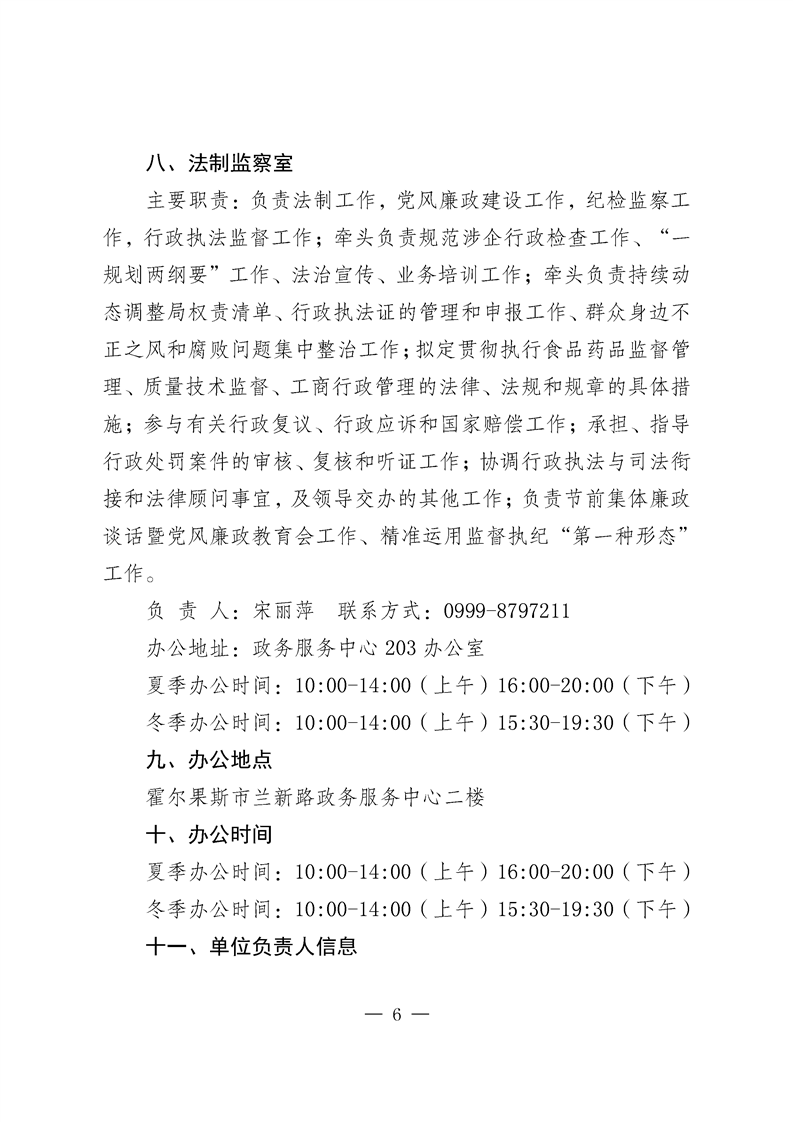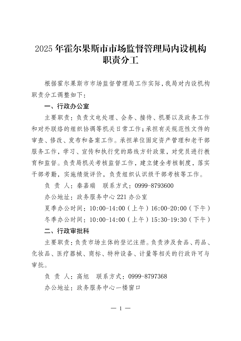 2025年霍尔果斯市市场监督管理局内设机构职责分工