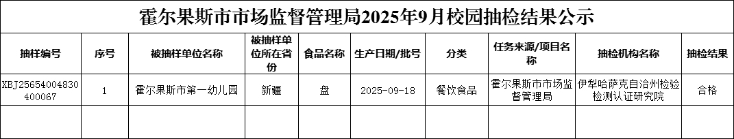 霍尔果斯市市场监督管理局2025年9月校园抽检结果公示