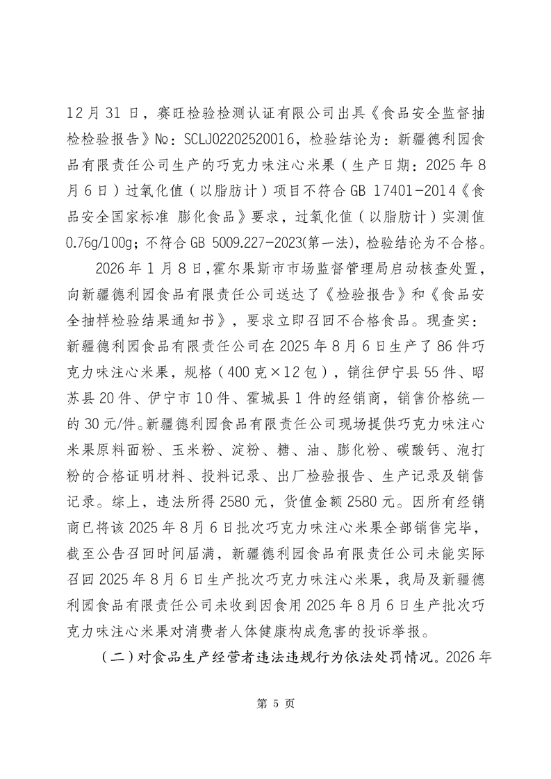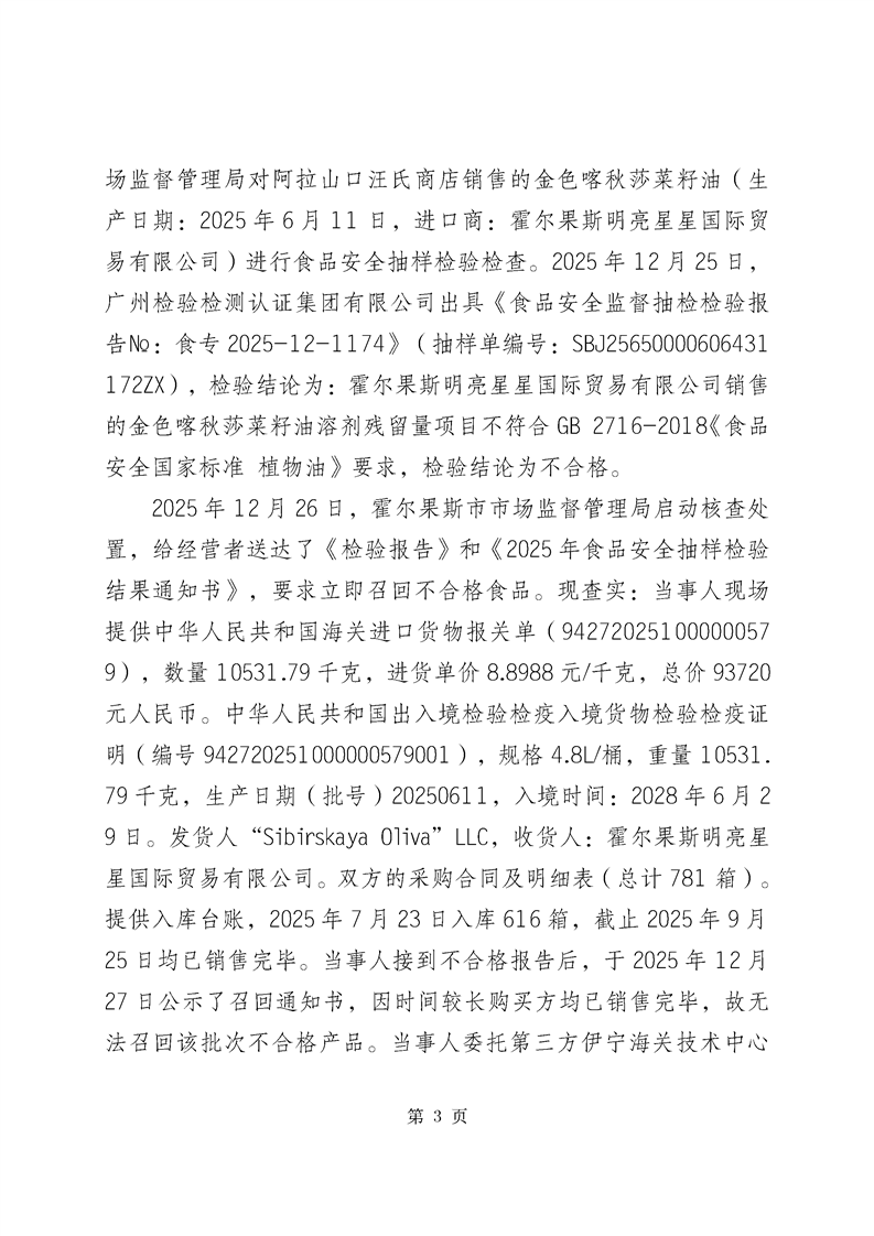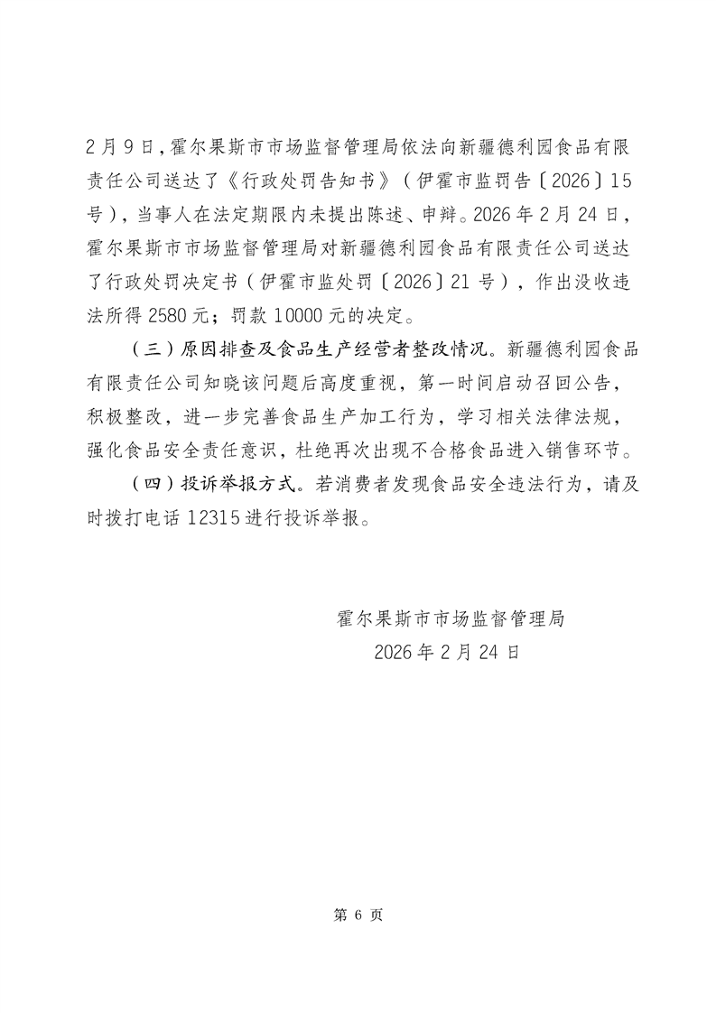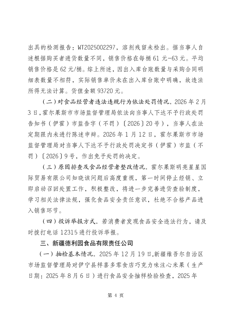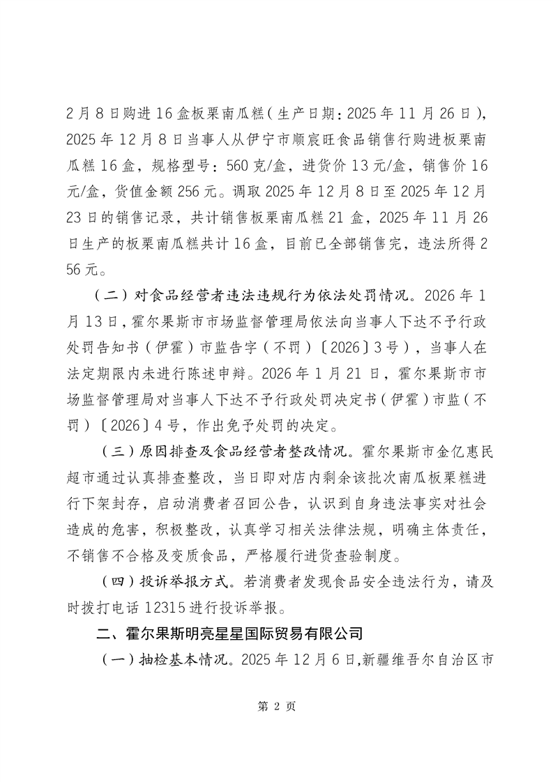 霍尔果斯市市场监督管理局关于不合格产品核查处置情况的通告(2026年第1期)
