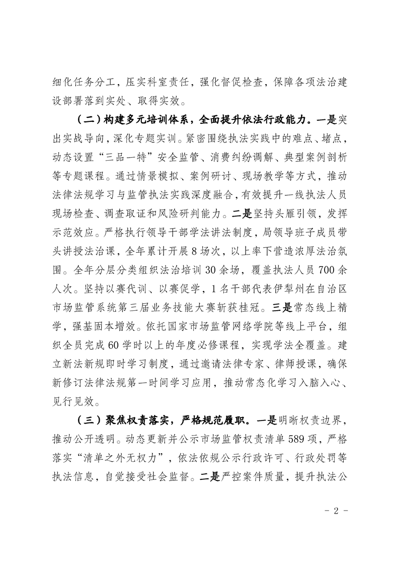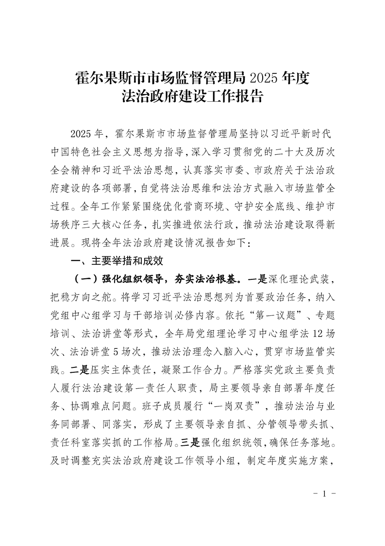 霍尔果斯市市场监督管理局2025年度法治政府建设工作报告