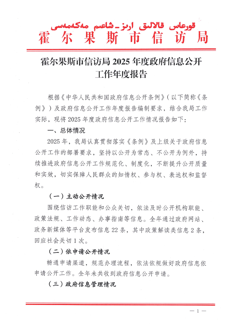 霍尔果斯市信访局2025年度政府信息公开工作年度报告