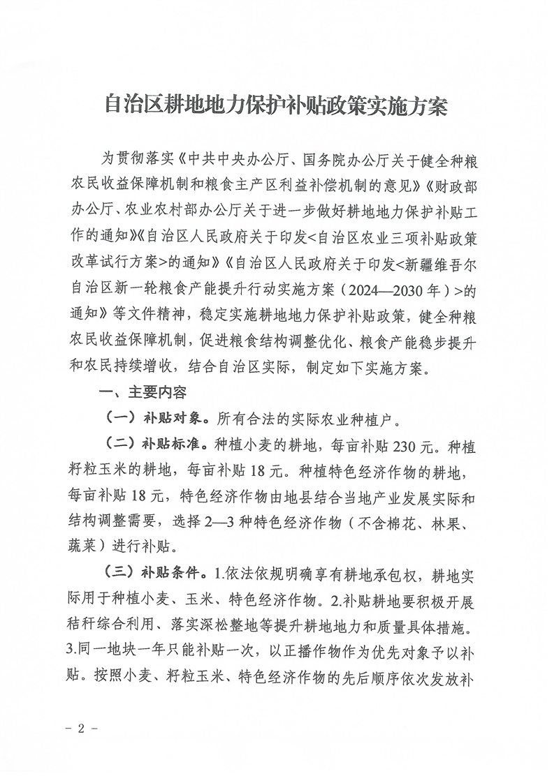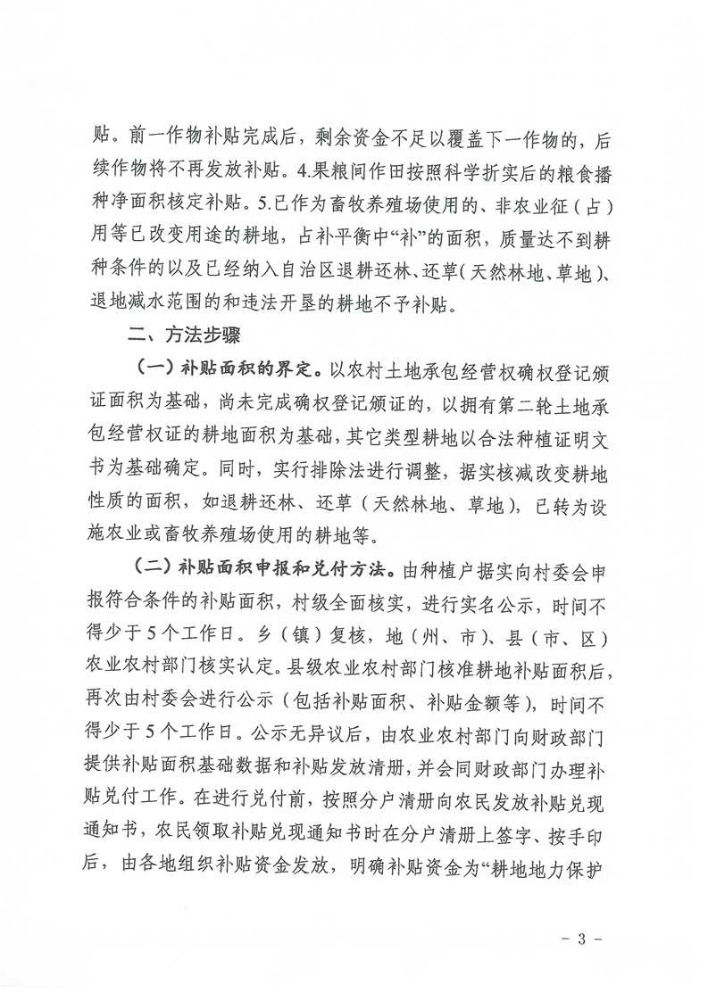 关于印发自治区耕地地力保护补贴实施方案的通知