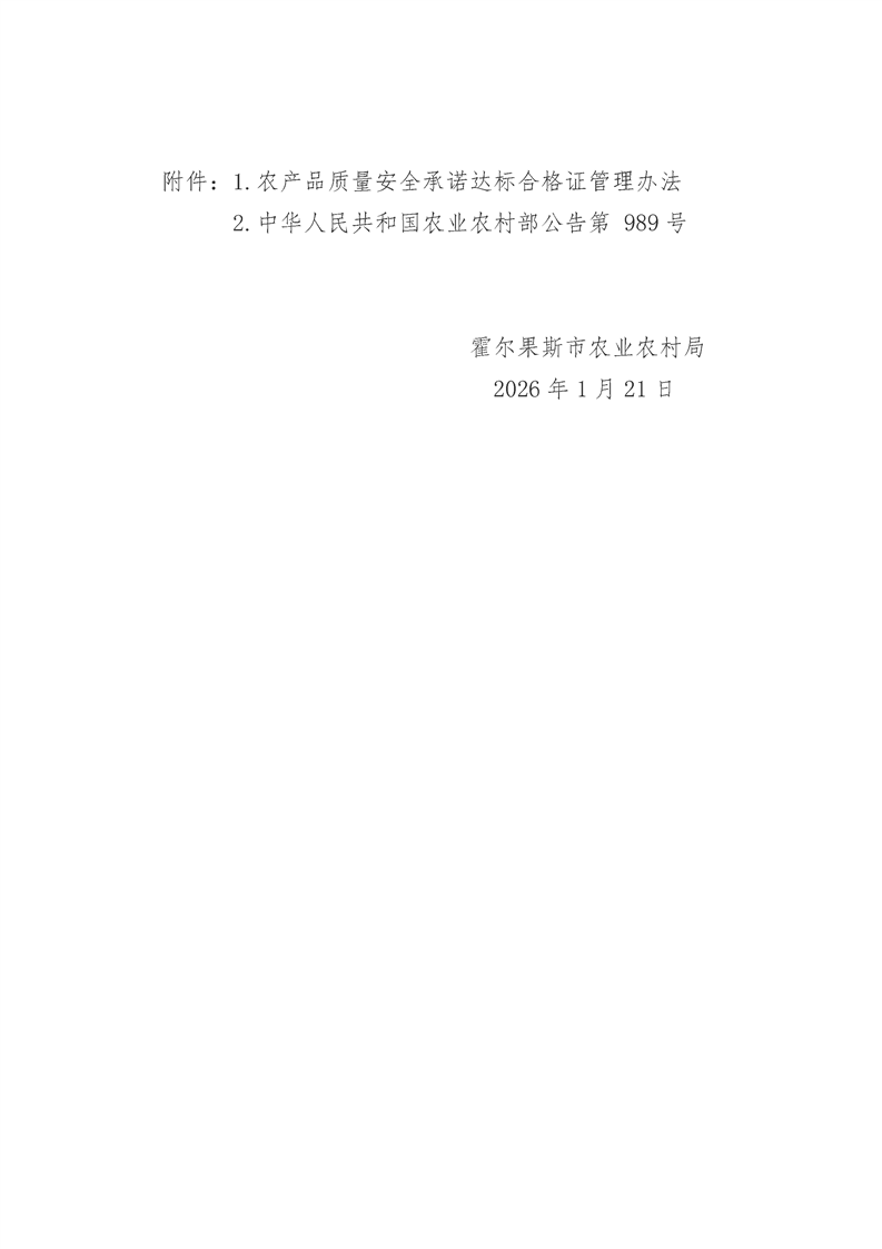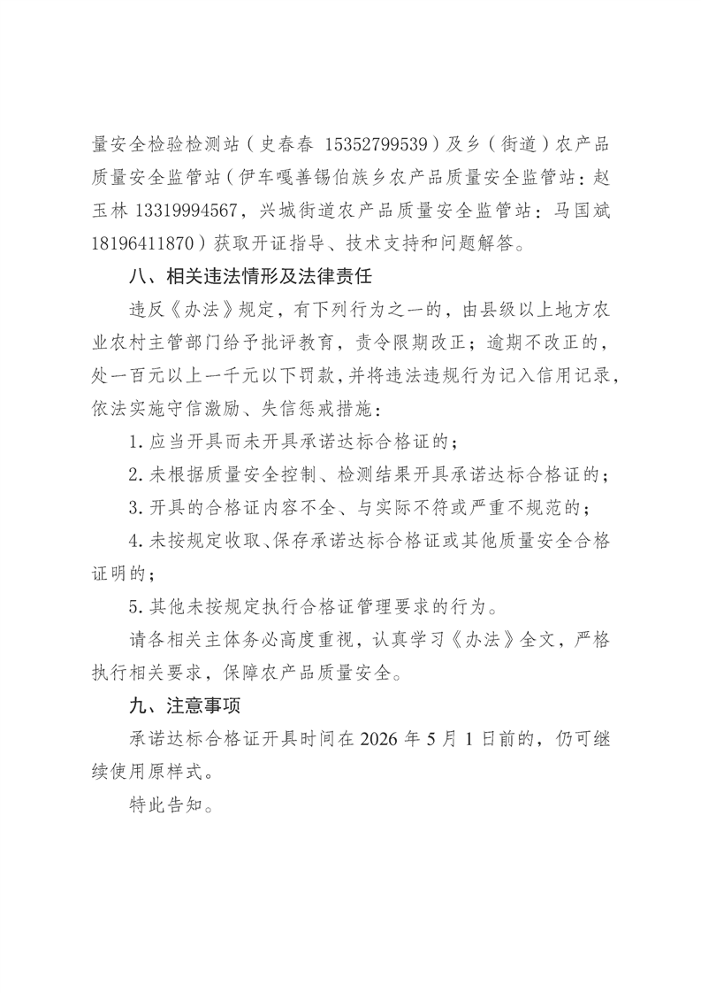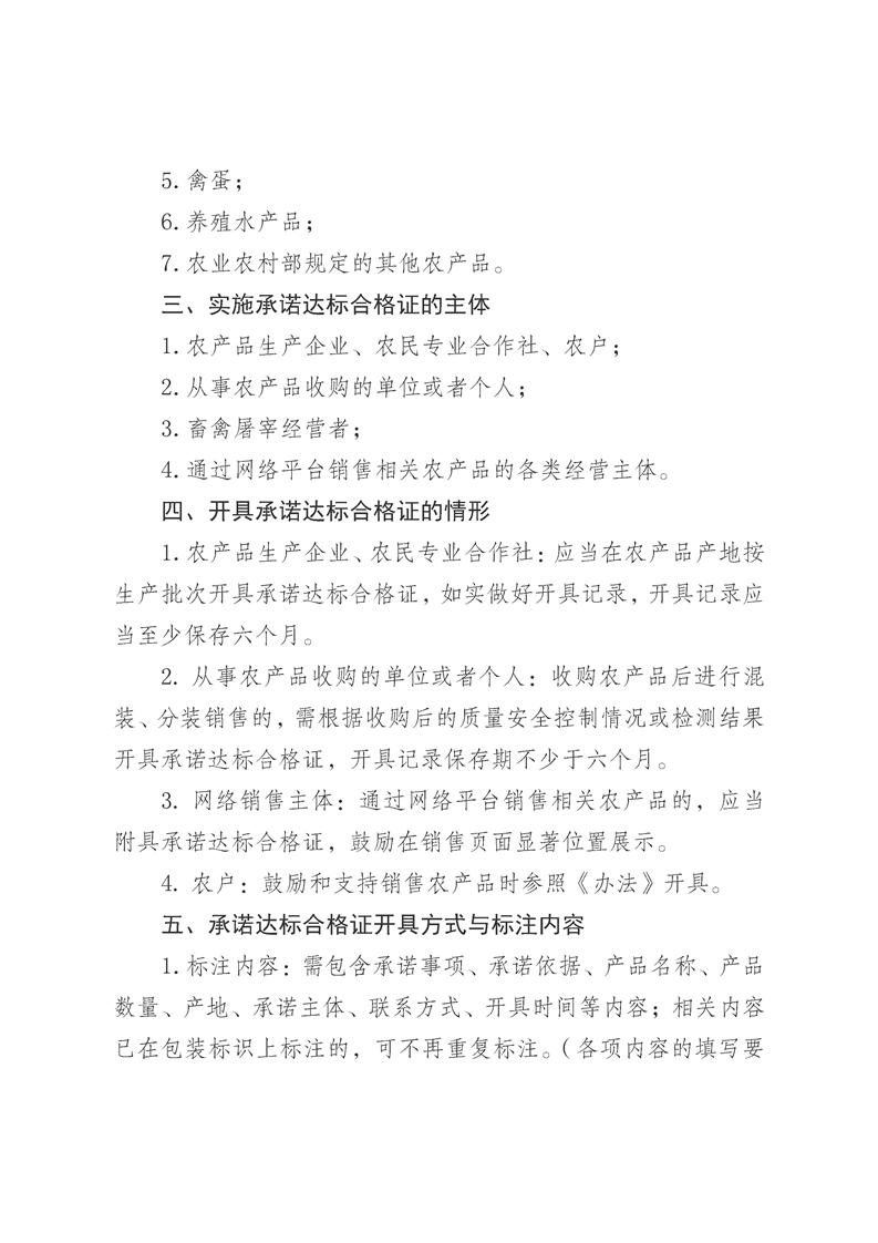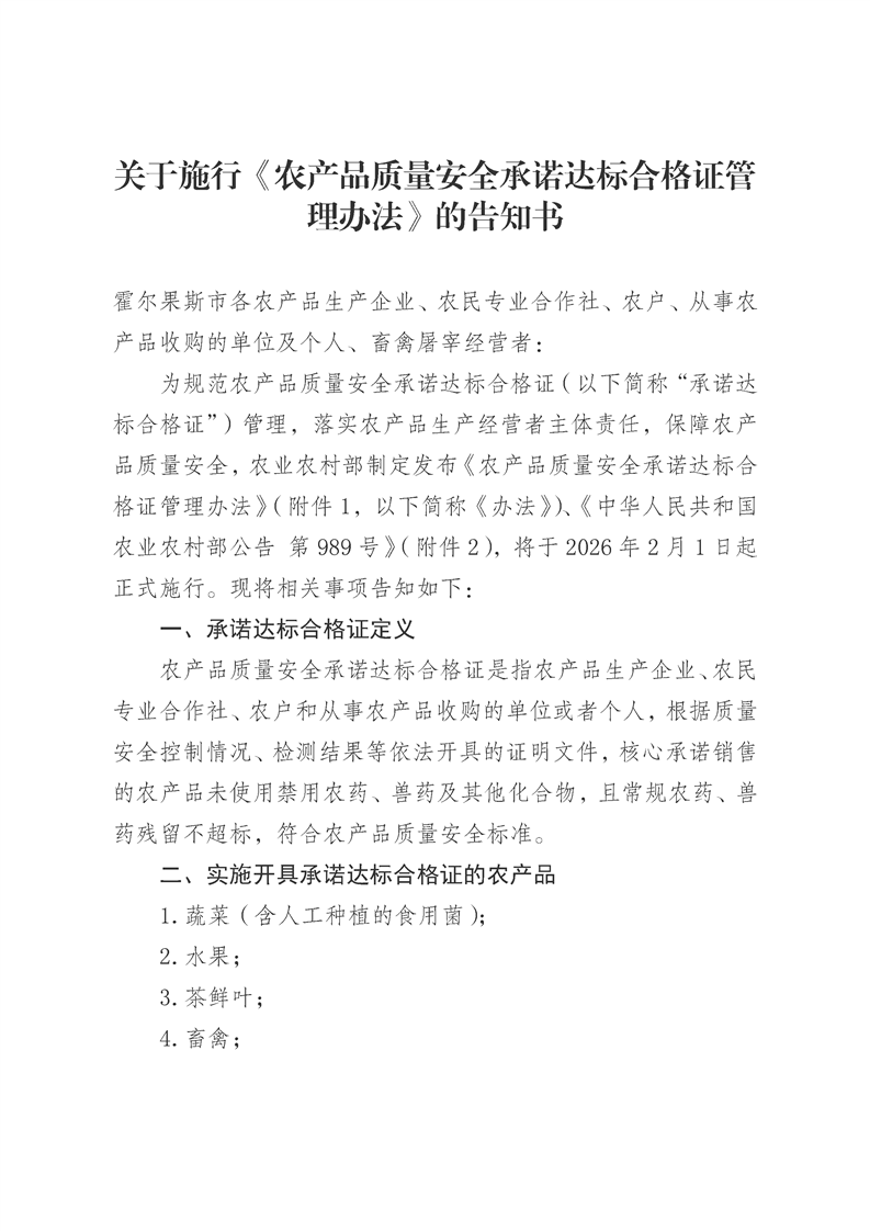 关于施行《农产品质量安全承诺达标合格证管理办法》的告知书