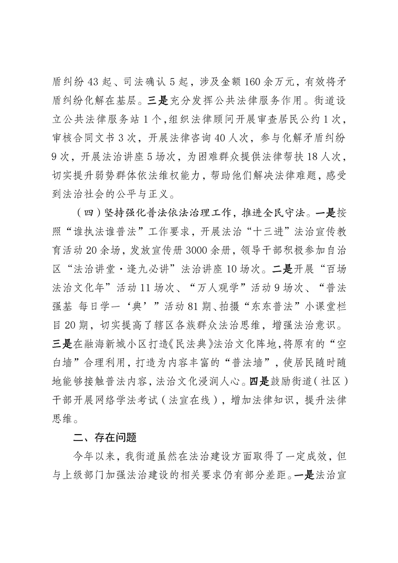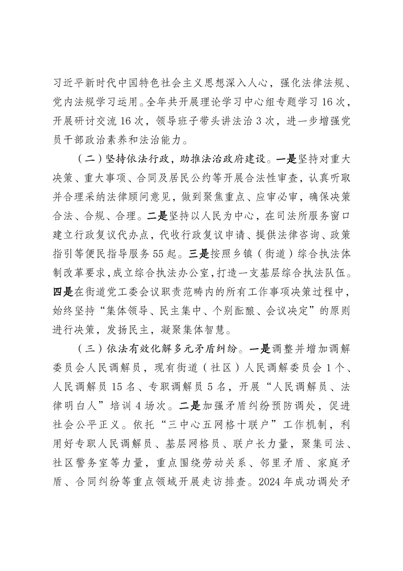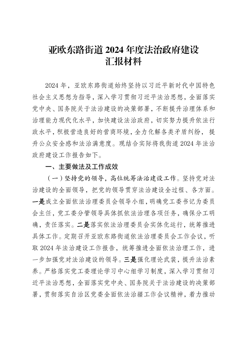 亚欧东路街道2024年度法治政府建设工作汇报材料