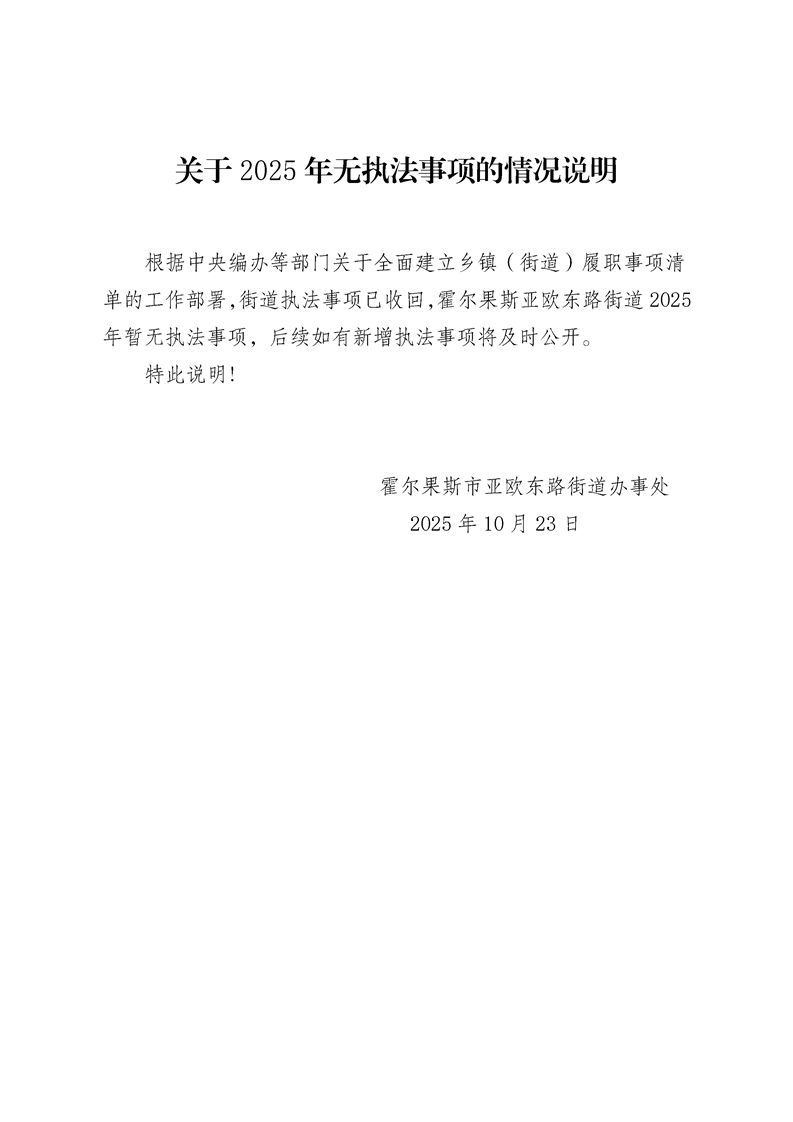 关于2025年无执法事项的情况说明