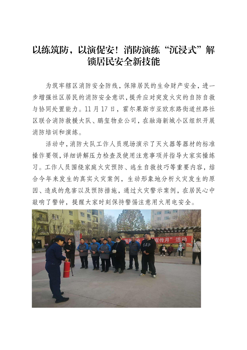 以练筑防,以演促安!亚欧东路街道消防演练“沉浸式”解锁居民安全新技能