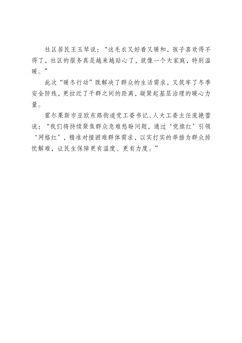 “暖冬行动”让群众温暖过冬
