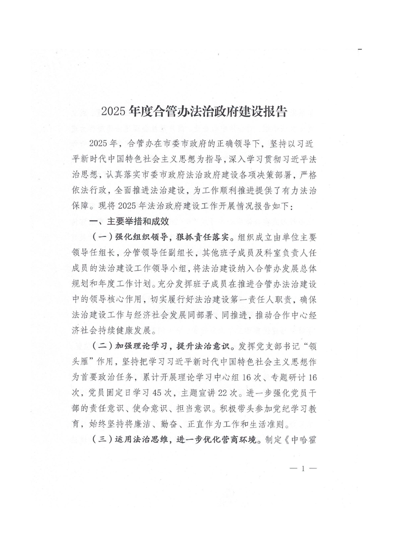 2025年度合管办法治政府建设报告