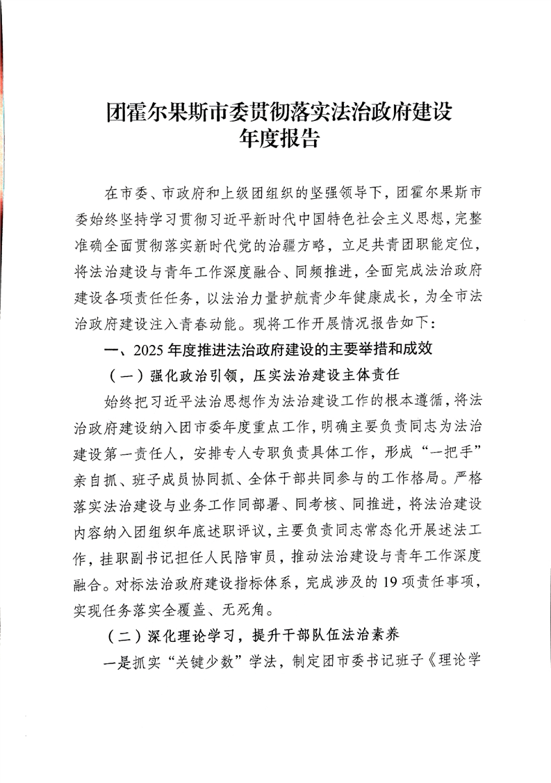 团霍尔果斯市委贯彻落实法治政府建设年度报告