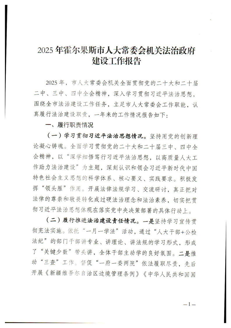 2025年霍尔果斯市人大机关法治政府建设工作报告