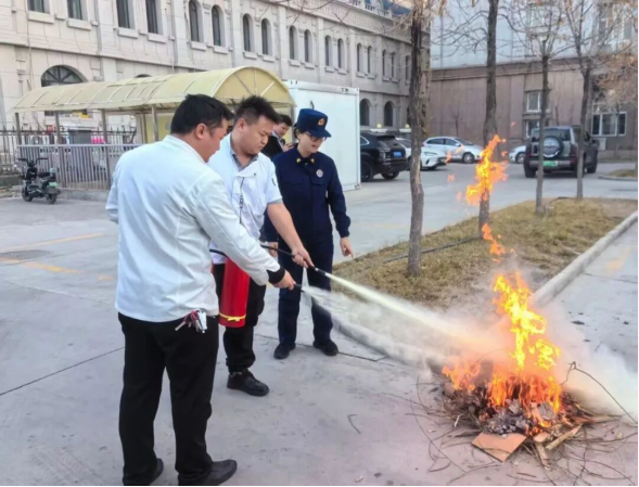 防火监督员现场演示了干粉灭火器“提、拔、握、压”的标准操作,并逐一拆解动作要领,提醒大家操作时需保持安全距离、对准火焰根部喷射。参训人员分组实操,切实将理论知识转化为实践技能。