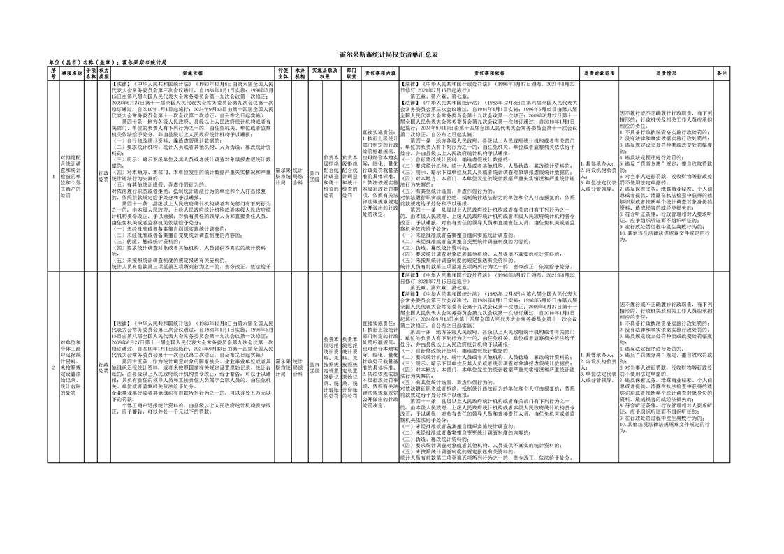 霍尔果斯市统计局权责清单汇总表