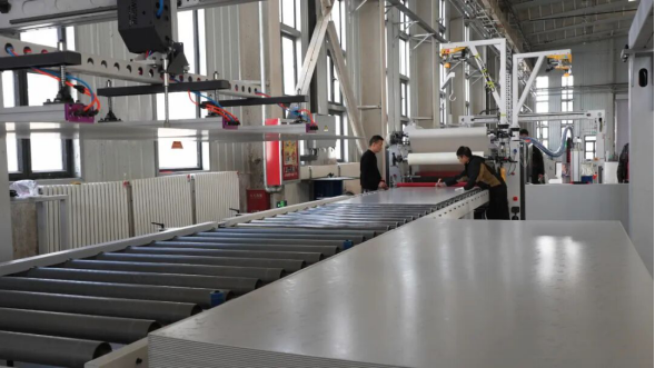 (某建材生产公司生产车间,工人正在作业。永程帆摄)